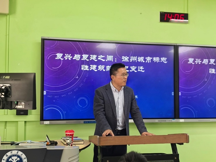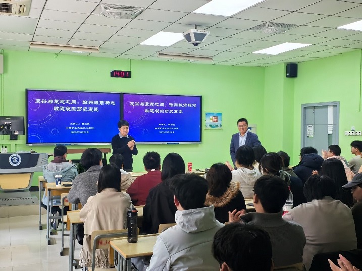 2026年3月27日下午,依托建筑与设计学院建筑学23级《城市发展史》课程进行的“专家进课堂”系列讲座在博4-306顺利举行。本次讲座邀请中国矿业大学外国语言文化学院副院长翟石磊教授和东南大学建筑设计研究院有限公司遗产院正高级建筑师、国家一级注册建筑师高琛研究员作为主讲人,我院常江教授主持。讲座以“历史与实践结合”为目标,对徐州市的城市发展历史、遗产保护、街区更新进行了从宏观到微观的系统讲解,课堂氛围轻松热烈,极大提升了学生课程学习的兴趣。 上半场,翟石磊教授从4500多年前的彭城讲起,系统梳理了徐州市不同时期城市发展与历史变迁,探讨了徐州区位条件、地理环境、战争等因素给城市空间及文化带来的影响,详细讲述了徐州作为一座黄河、运河交汇的城市,洪水泛滥对明清时期徐州城市建设的影响。其次,翟教授通过大量珍贵的历史照片和史料,讲述了徐州市明城墙、南城门、燕子楼、戏马台、教堂建筑背后的故事,强调城市建设实践中除了空间的复建,更重要的是对历史文化的延续与重塑。 下半场,高琛研究员介绍了其主持的徐州户部山户南巷地块保护修缮工程的背景、规划思路及详细更新方案,提出城市更新中需要立足“保护真实历史载体”与“分类分级处置”原则,深入挖掘文献与图像史料,梳理街区格局与多元文化价值;细致开展现场勘察及病害分析,掌握传统工艺与结构安全状况;对文物本体实施最小干预修缮,对传统宅院进行原状修复,并改造既有建筑、织补功能空间,实现新老协调;同步研究业态布局与基础设施提升,为街区保护与活化利用奠定坚实基础。 课堂气氛活跃,同学们受益匪浅。常江教授在总结中表示,此次讲座打破了历史类课程“史技分离”的困境,通过了解身边的城市历史及更新实践项目,不仅激发了同学们对城市历史学习的兴趣,更培养了学生作为建筑师、规划师尊重历史、敬畏历史的职业信念。